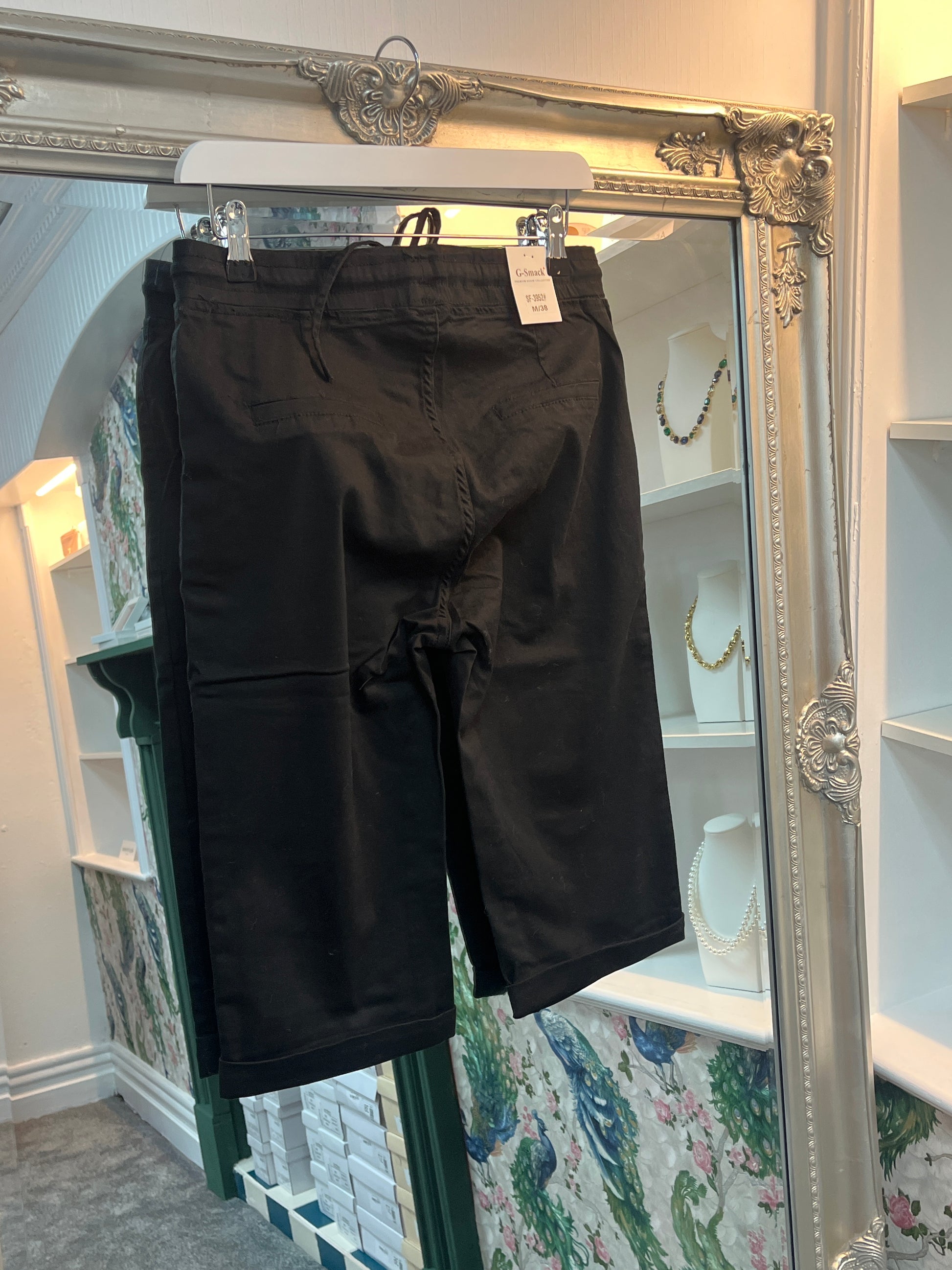 Stay effortlessly stylish this season with these G-Smack women’s black denim shorts, available in sizes 10–22. Designed with a flattering mid-length cut, elasticated waistband, and adjustable drawstring, they offer the perfect mix of comfort and everyday style. Finished with rolled hems and 5-pocket detailing, these versatile shorts are a chic alternative to classic blue denim.