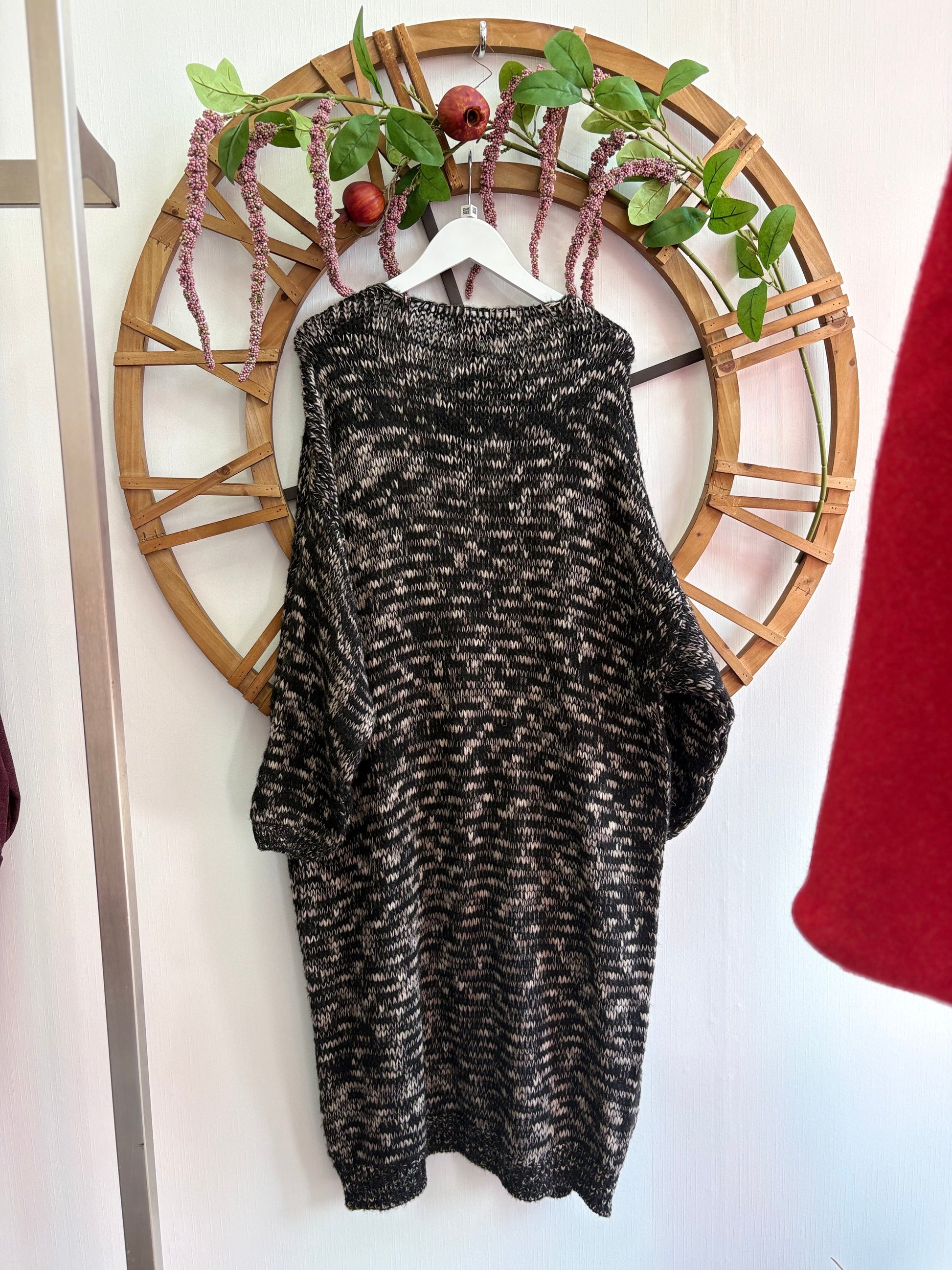 Luxtyle Black & Taupe Longline Knit Cardigan – One Size fits up to 18